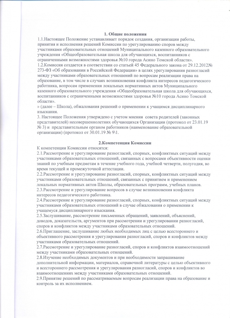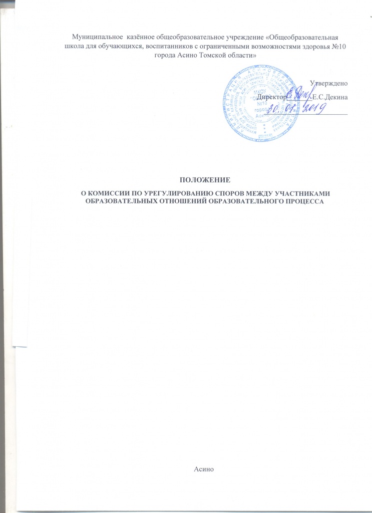 Положение о порядке и основаниях перевода, отчисления и восстановления обучающихся, порядке оформления возникновения, приостановления и прекращения отношений между Муниципальным казённым общеобразовательным учреждением «Общеобразовательная школа для обучающихся, воспитанников с ограниченными возможностями здоровья №10 города Асино Томской области»